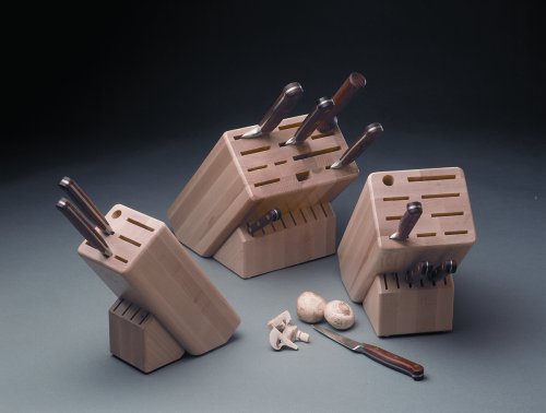 - Holds 9 large knife and 8 paring or steak knifes, cleaver, scissors and steel- Made of maple wood